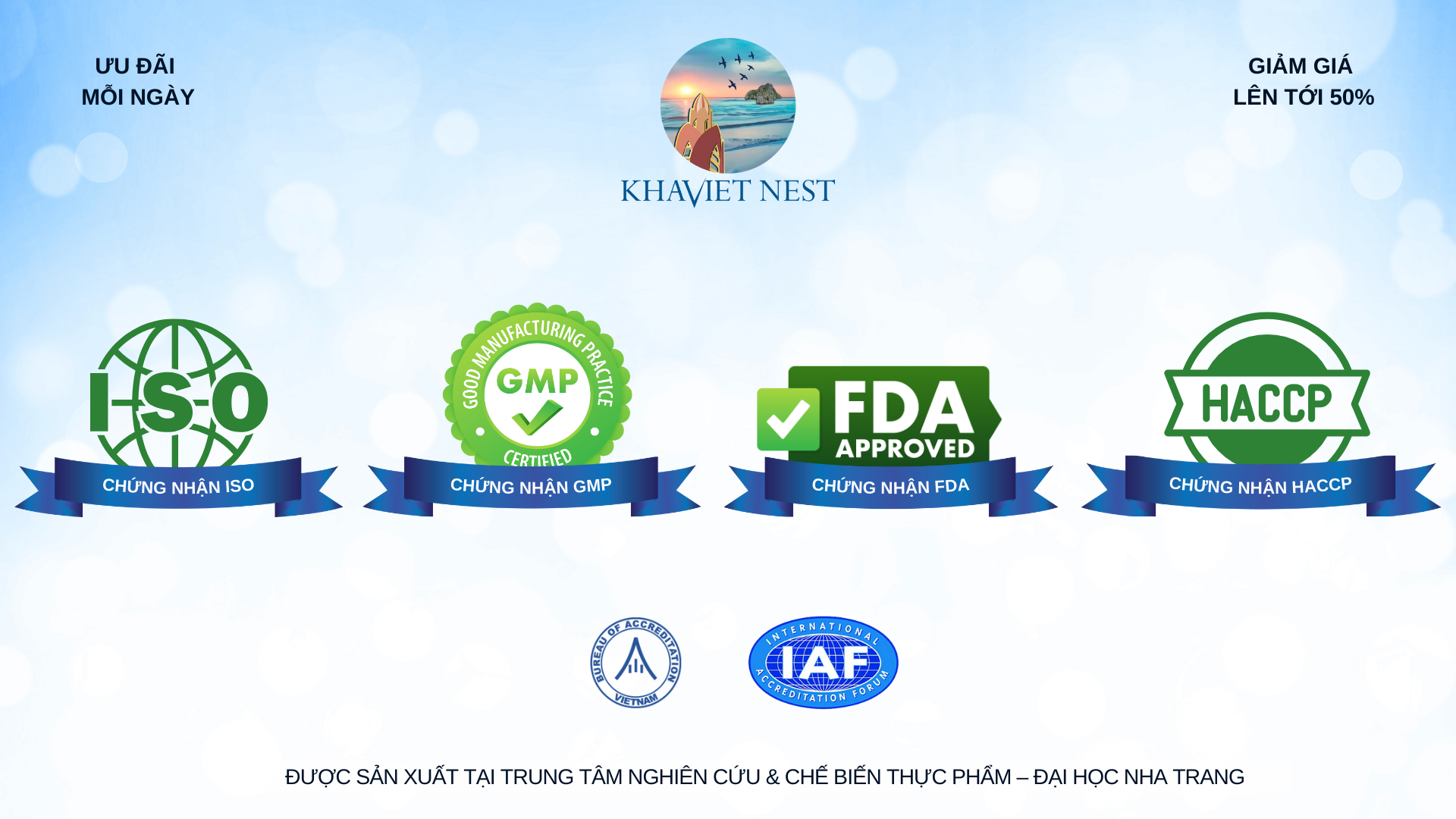 Với mong muốn đưa yến sào Việt Nam vươn xa, Khaviet Nest không ngừng đầu tư vào chất lượng và tiêu chuẩn quốc tế. Chúng tôi tự hào khi sản phẩm đạt các chứng nhận về an toàn thực phẩm, tiêu chuẩn xuất khẩu và được nhiều khách hàng tin tưởng lựa chọn.